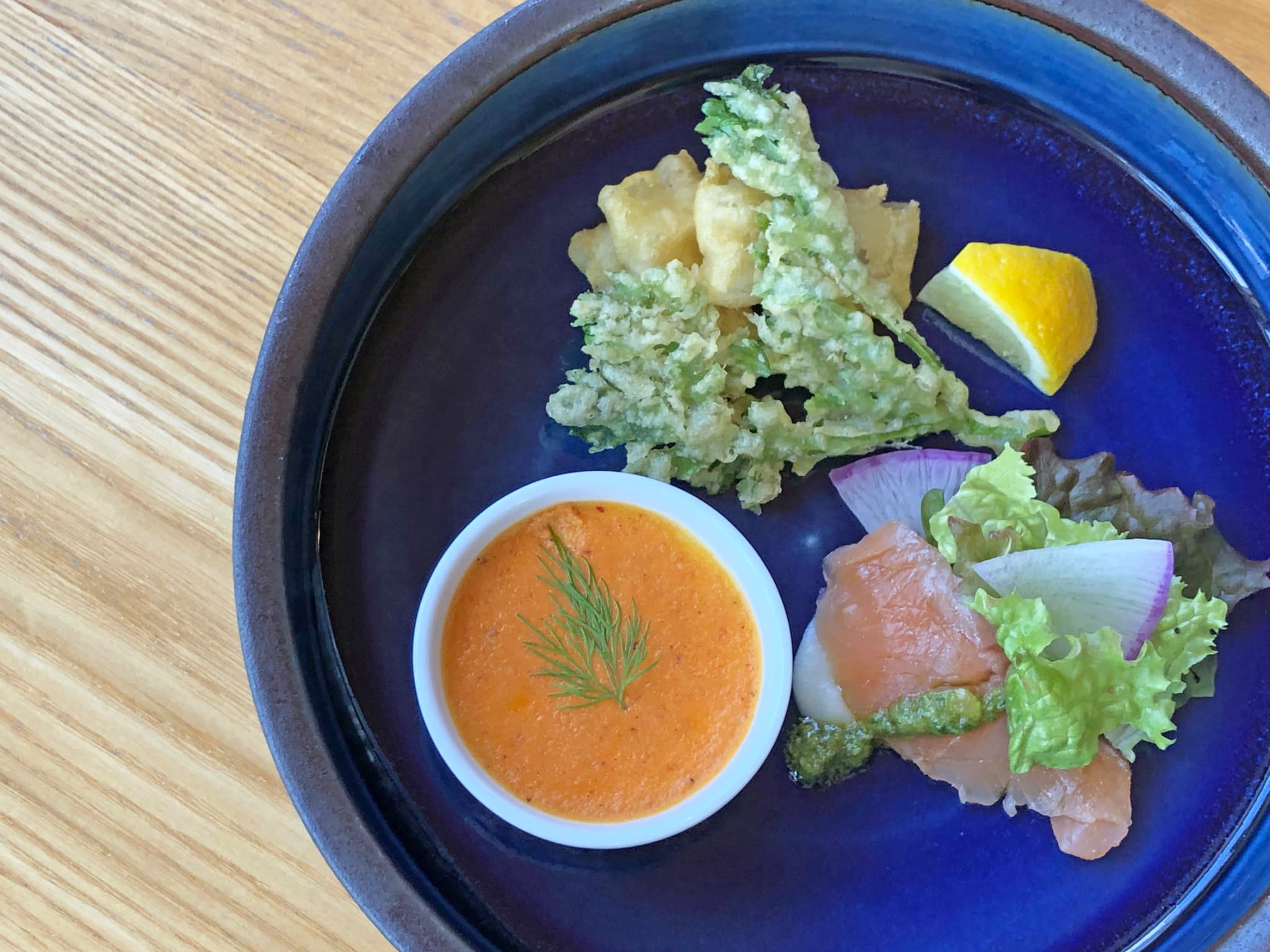 春の味覚を使った華やかな前菜の盛り合わせです。