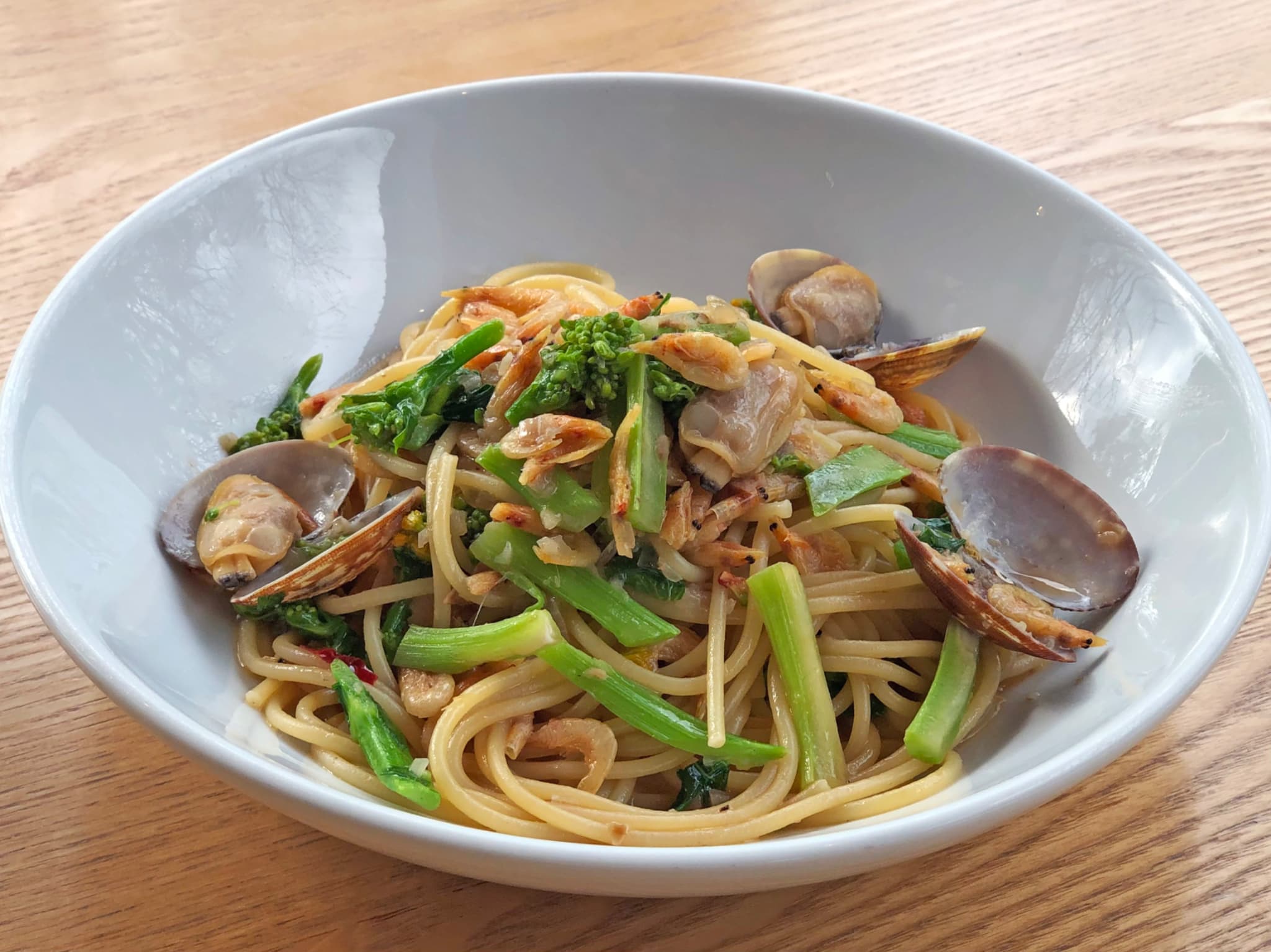アサリに菜の花と春に美味しい食材を合わせました。桜エビの独特の食感と味わいは唯一無二です。シンプルな食材ながら満足のいく一皿です。季節を感じるパスタをお楽しみください。
