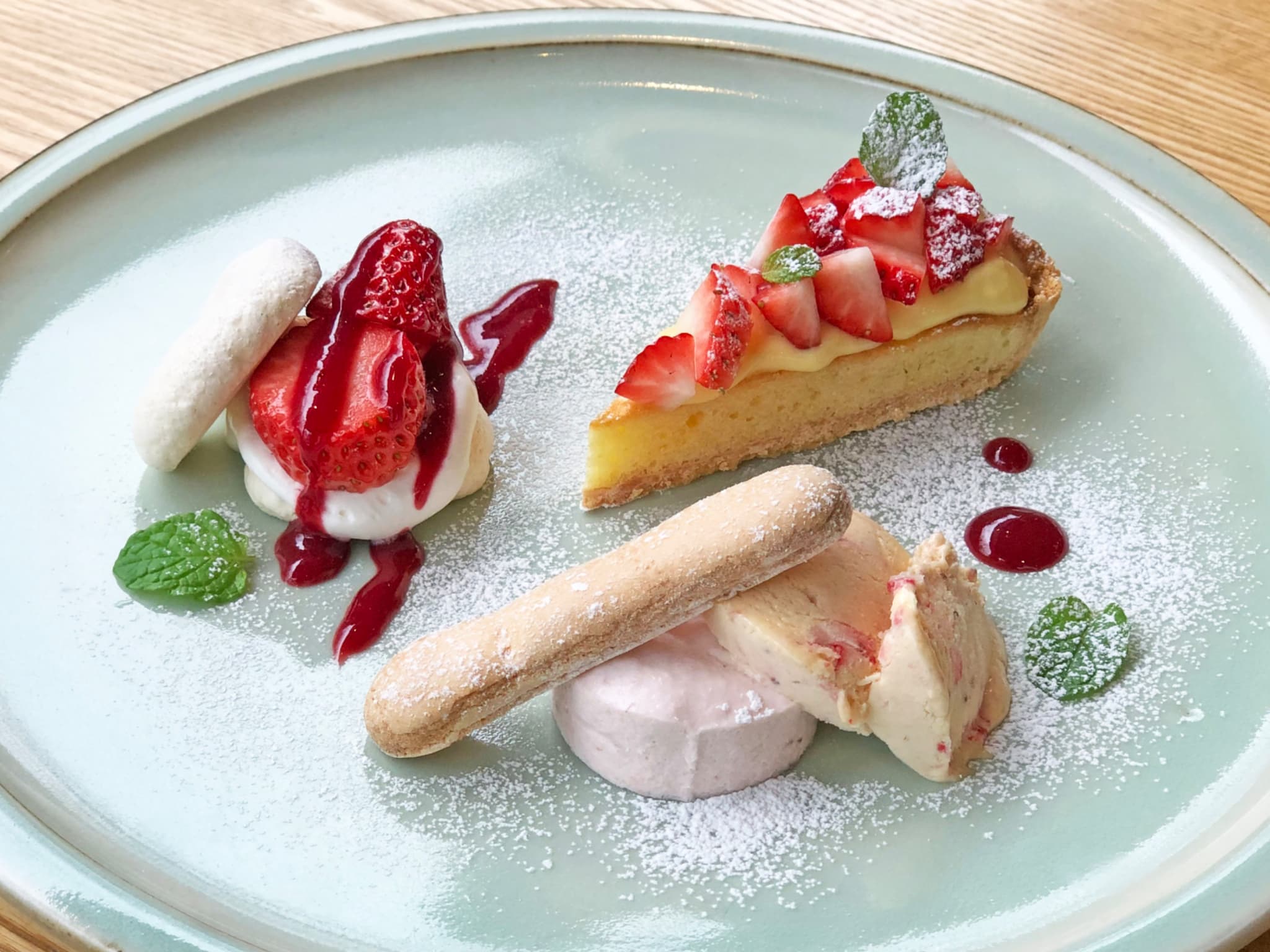 コースの最後には、いちご好き、スイーツ好きにはたまらない甘さたっぷり京丹後産あきひめのいちごをふんだんに使ったデザートプレートです。春のおいしいがたくさんつまったコースです。
